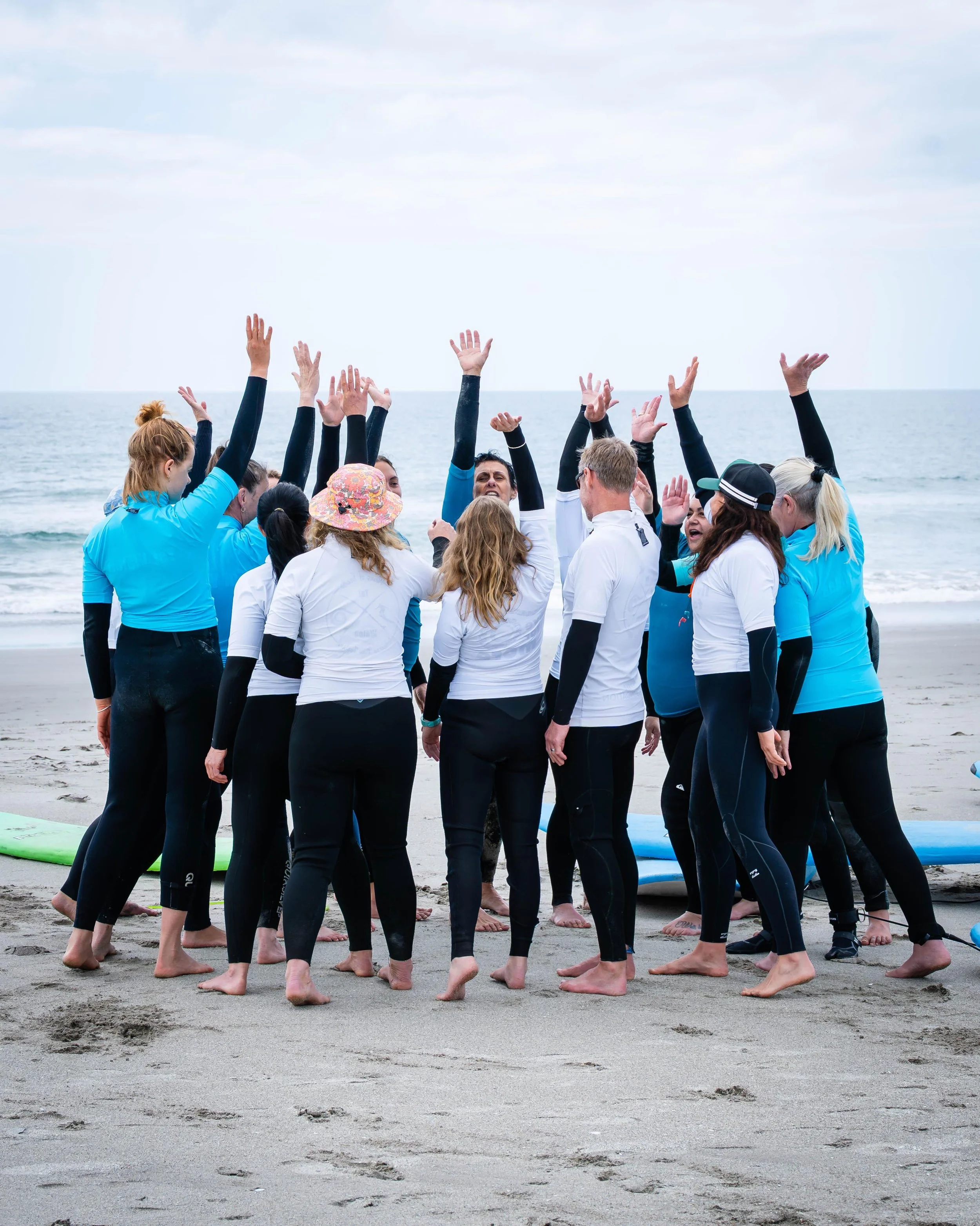Salt Sisters wraps holistic emotional, social and physical support around the surfing itself. Alongside inclusive, confidence-focused surf instruction, we provide facilitated group reflections and writing circles, access to 1:1 counselling and life coaching, and intentional spaces for kōrero and whakawhanaungatanga. Small, consistent groups foster genuine connection, peer support and a strong sense of belonging, while trauma-informed, non-competitive practices support emotional regulation, self-trust and wellbeing.